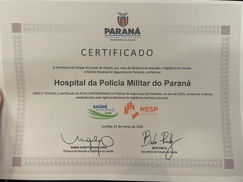 Para o Diretor de Saúde da Polícia Militar do Paraná (PMPR), Coronel QOS Mauro Fernando Kürten Ihlenfeld, o reconhecimento representa a consolidação de um trabalho contínuo voltado à excelência no atendimento: “Receber, pelo segundo ano consecutivo, essa certificação de alta conformidade demonstra que estamos no caminho certo, com processos bem estruturados e equipes comprometidas com a segurança e o cuidado com a vida. Esse resultado é fruto do empenho diário de todos os profissionais do Hospital da Polícia Militar, que atuam com dedicação e responsabilidade para oferecer um atendimento cada vez mais qualificado aos nossos militares estaduais e seus dependentes.”