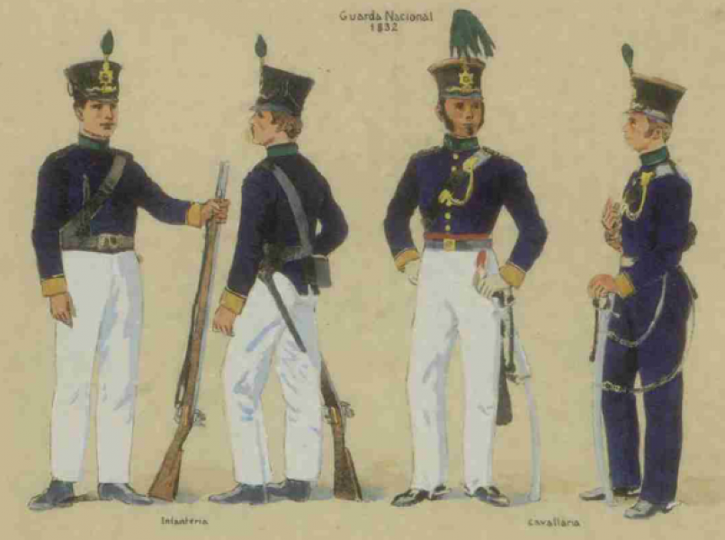 Uniforme de 1832 da Guarda Nacional. Imagem extraída da obra “Uniformes do Exército Brasileiro”, de 1922.
