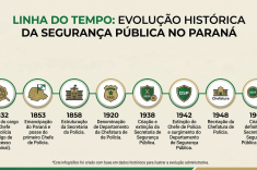 Evolução histórica do órgão de coordenação da segurança pública no Paraná. Imagem gerada por IA (Gemini).