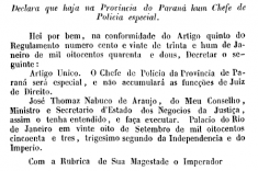 Decreto que define que o Chefe de Polícia do Paraná seria de classe especial. Extraído da Coleção das Leis do Império do Brasil de 1853 (Tomo XVI, Parte II), disponível na página da Câmara dos Deputados.