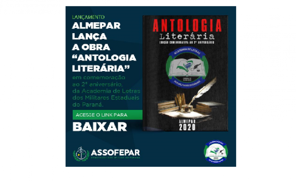 A ASSOFEPAR teve a grande honra de receber recentemente em seu acervo cultural exemplares da obra denominada Antologia Literária, a qual foi lançada no 2º semestre de 2020, em comemoração ao 2° aniversário, da Academia de Letras dos Militares Estaduais do Paraná (ALMEPAR).