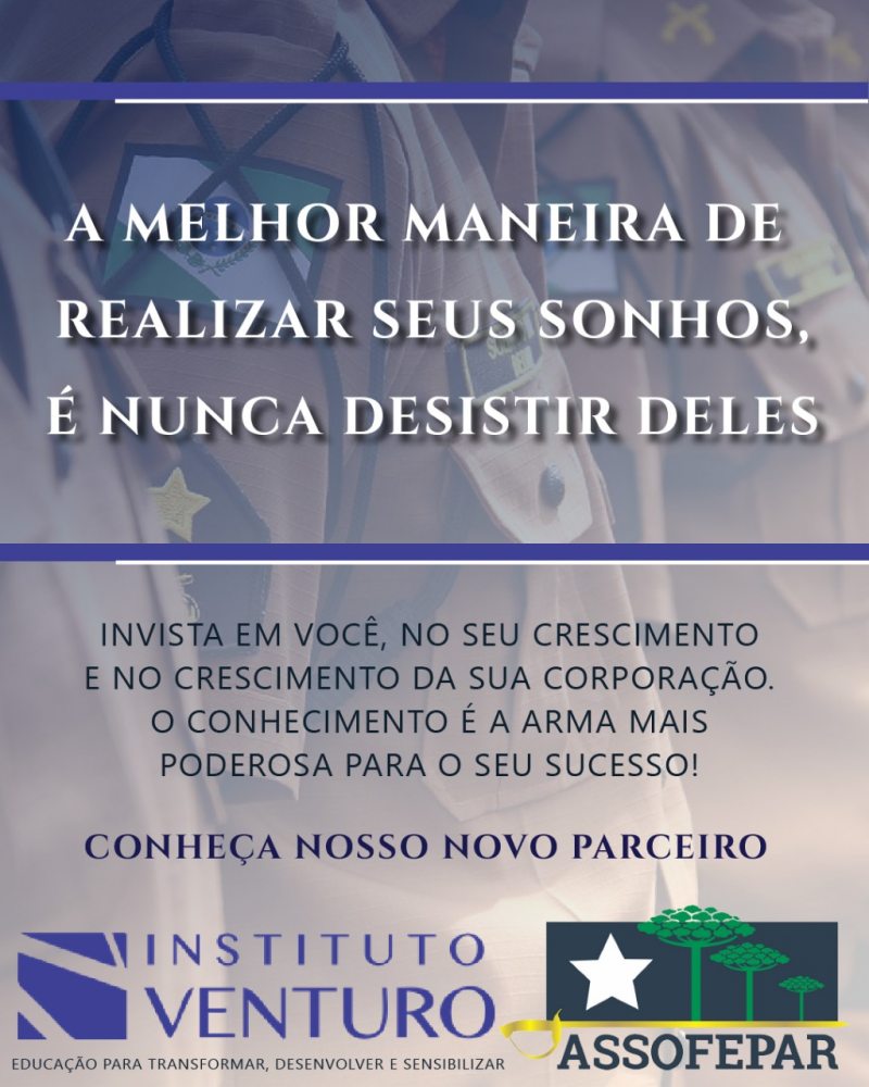 O foco é o profissional que atua na área de segurança pública e seus familiares. Esse público tem desconto de 50% nos cursos. Para os Associados da ASSOFEPAR, foram concedidos 10% adicionais a esse abono já concedido aos Militares, por meio de um convênio firmado neste mês de junho, em que os responsáveis pelo Instituto Venturo foram recebidos pelo Presidente da Associação, Coronel Izaías de Farias, na sede da ASSOFEPAR.